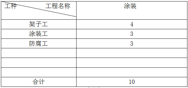 根據(jù)工程實(shí)際需要,選派多年從事噴涂施工、架子搭設(shè)等精干技工,組建相應(yīng)的作業(yè)班組。