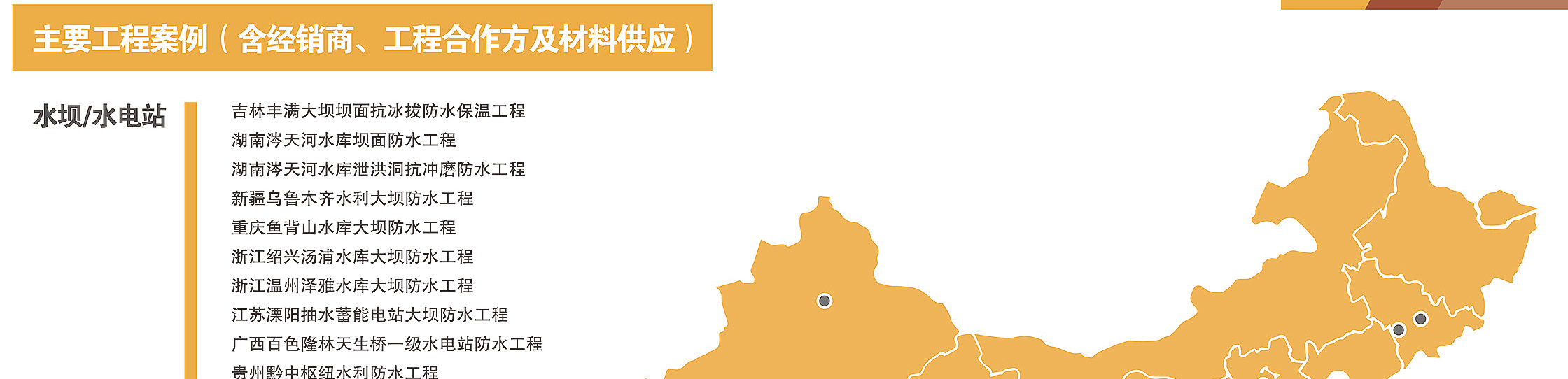 防水領域:水利大壩防水、屋面防水、地下室防水、廚房衛生間防水、外墻防水、橋梁隧道地鐵防水等各類混凝土的防水防護。